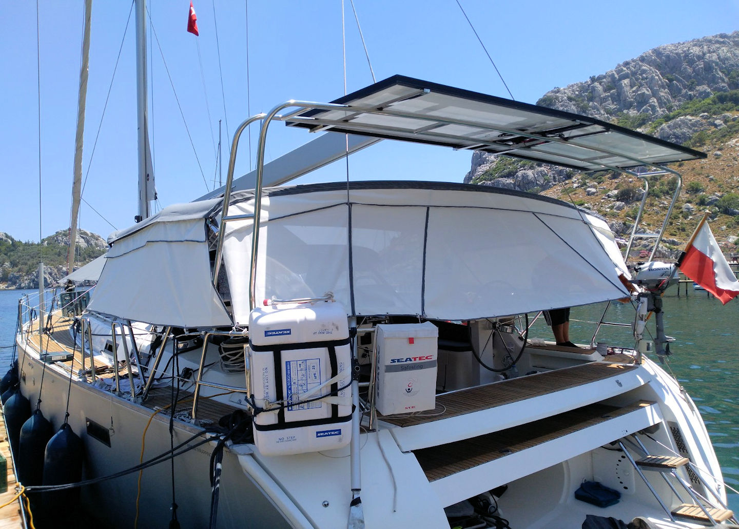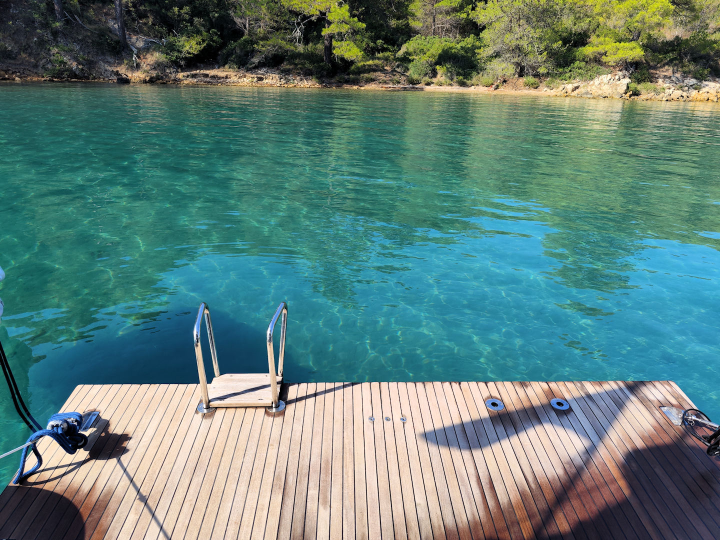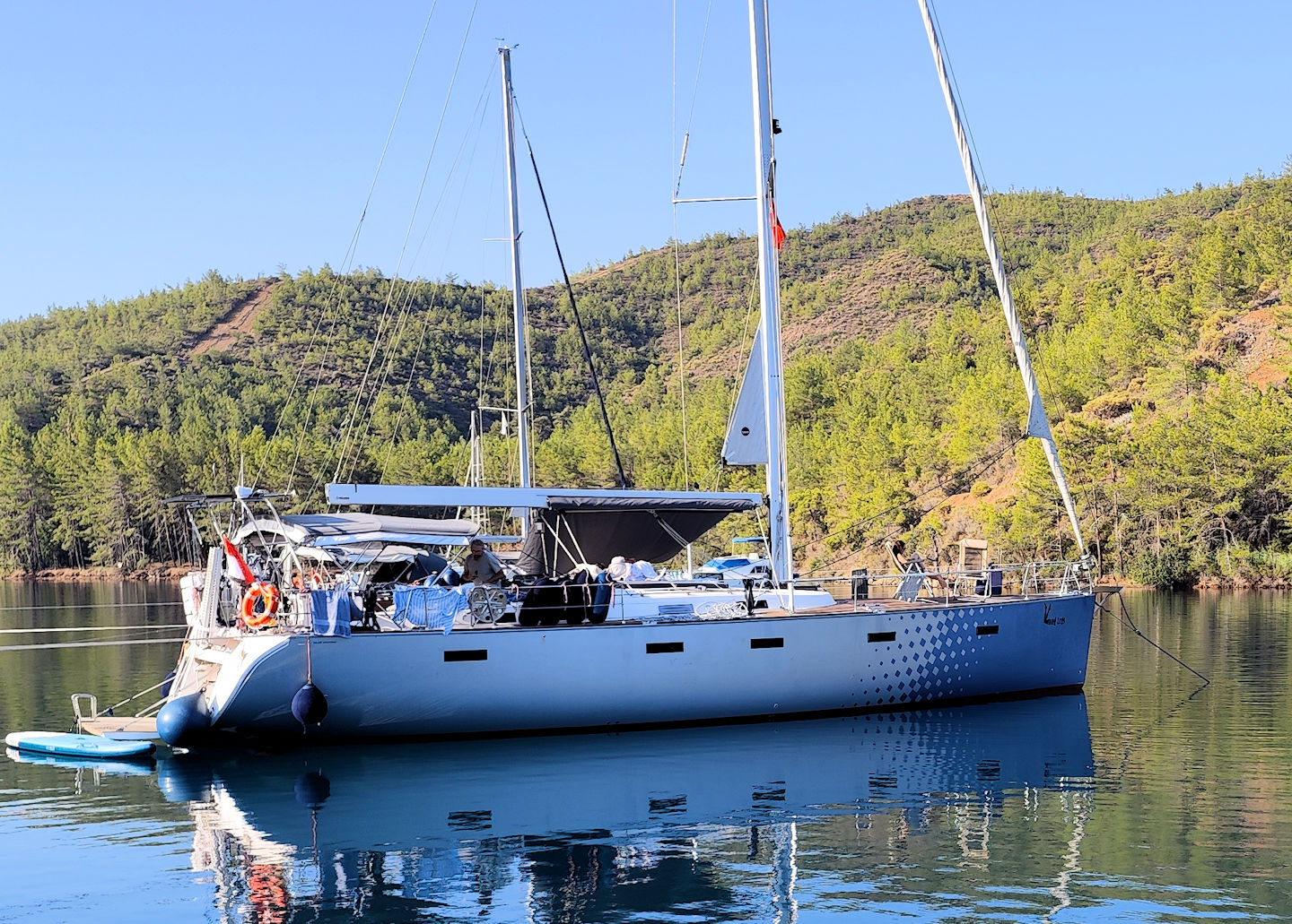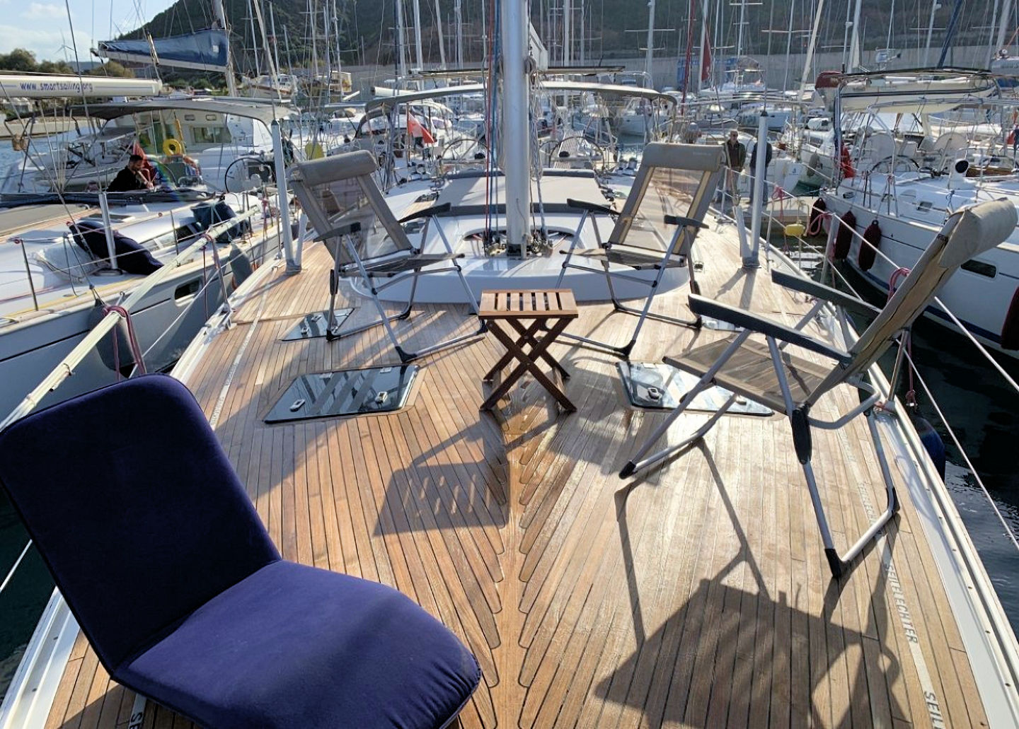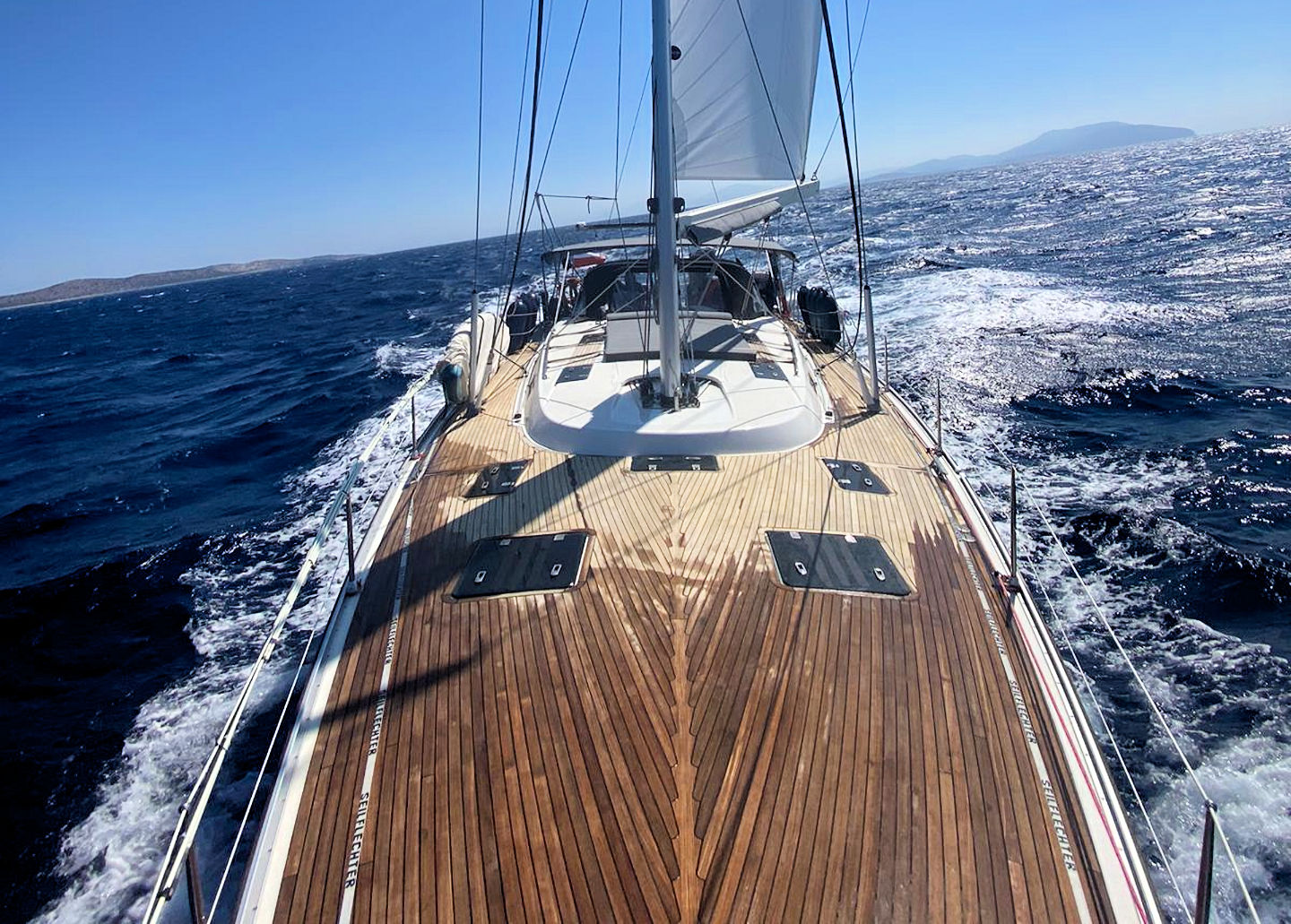 The interior design of the 3 cabins creates an ideal setting for families and friends, accommodating up to 8 people. The owner's cabin, with a cloakroom, indoor bathroom, and separate shower room, provides guests with privacy as if they were at home. The additional equipment, such as a dishwasher, generator, air conditioning, electric winches, and an electric roller, makes staying and traveling unexpectedly easy and enjoyable. Each cabin has its own separate head with a shower, toilet, and sink. Additional amenities include an 8kW generator, full air-conditioning, electric toilets, an electric furling system, electric winches, sunbeds, pressurized hot/cold water, a TV/DVD, a Hi-fi music system, a large tender with a 15HP outboard, and much more! It is the perfect platform for both training and charter, an ideal way to experience the joy of sailing, proving that you can indeed mix the best of both worlds: comfort and adventure!
