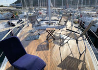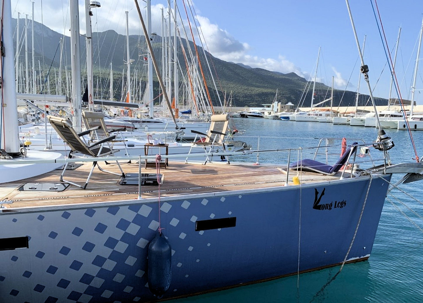 "Long Legs," a Bavaria Yacht, was designed by the world-renowned Bruce Farr, the man whose designs have won the America's Cup, the Volvo Ocean Race, the Sydney-Hobart Race, and the Rolex FastNet. Reorganized under new ownership, they took the braver (and costlier) route of using Farr Yacht Design to draw the hull lines and advise on construction, and BMW DesignworksUSA for the exterior design. The new line is called Bavaria Yachts 55, and this is their flagship model.