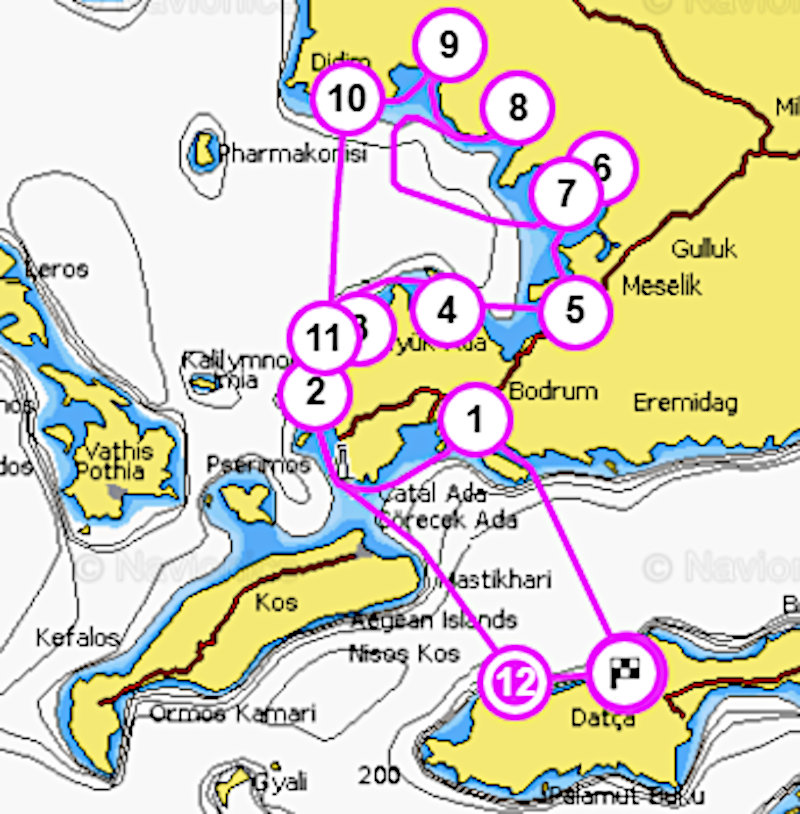 - We stop in a different bay or island for each night. Our routes are published yearly and they will be either along the Turkish coast or Greek Islands depending on the particular week(s). You can browse through our routes here:( Program )