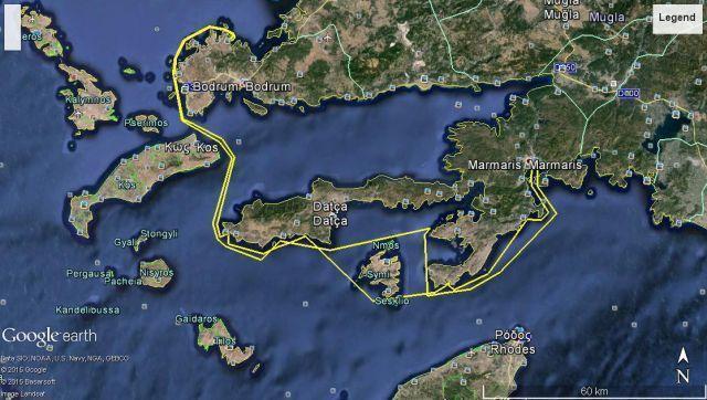 | Day 2 Cairos Marina – Bodrum Another long leg with an early start. Bodrum is an inviting, colorful crowd full of surprises, sometimes a humble wiseacre and a loose wise man, sometimes it is an alone crazy, it is freedom, love; Bodrum is sun, sea and after all it is history… In short Bodrum is everything and everybody. Because everybody has it is own Bodrum here. Some live a modest, peaceful and quiet life, some live crazily madly. Bodrum is a White that bears all colors and also internalizes them. It rains different here and also the sun rise different and sets completely different. Wind blows different, sea smells else. Bodrum is the naughtiest, the haughtiest, the most inert, the most beautiful, the most honest and the most frank child of Nature Mother. |