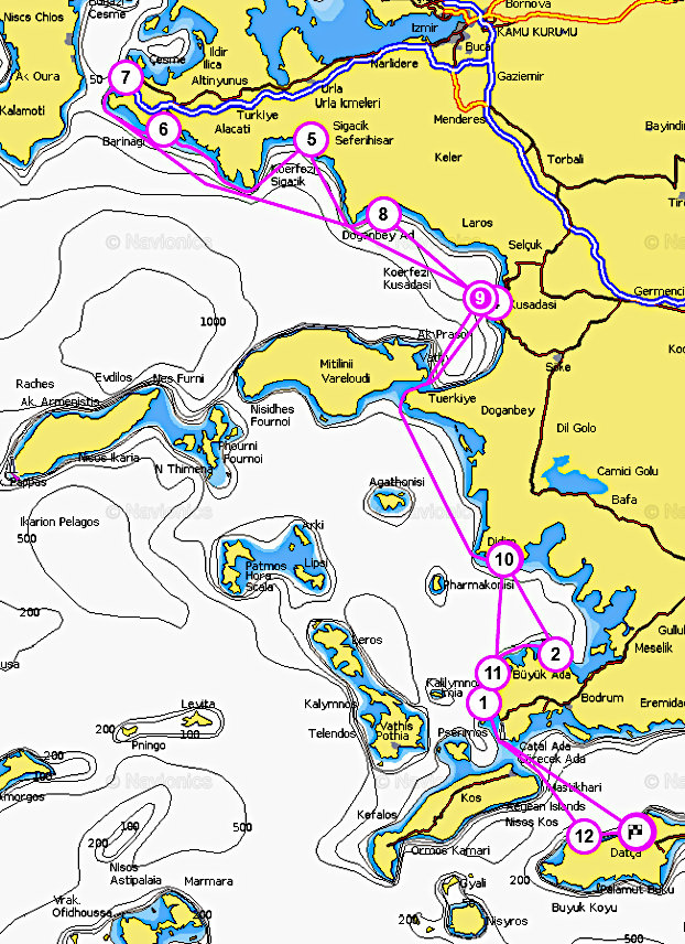 | Day 11 Doganbey - Didim Today we start our return. It is long but fast leg with down winds. We will try to reach back to Didim. |