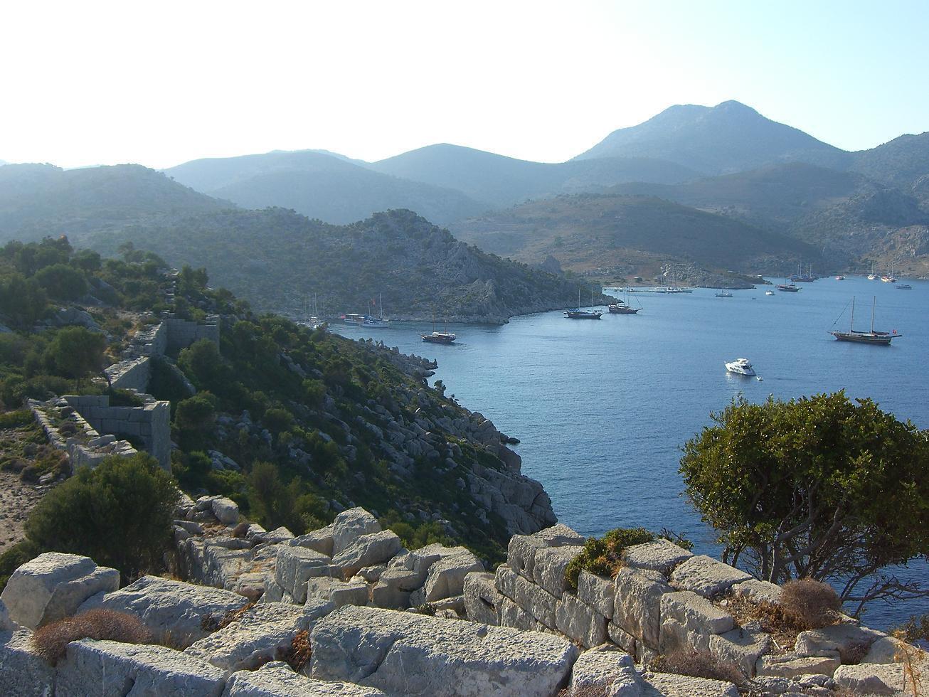 Surrounded by large and small numerous bays, headlands and islands, Bozburun, hides heavens amongst little grassy hills. This land of the fjord is famous for its bays which laps to the Mediterranean Sea. After passing the Karaburun which is the southern tip of the peninsula, Bozukkale is the first bay between the remaining of Degirmenburnu and Kaleburun. The right to land is a wide gulf between the two capes which is surrounded by olive groves and scrub. The surrounding port is called bozukbuku (distorted bay) by the sailors. Bozukkale is one of the preferred sheltered stations against the winds by the cruise boats. Water is very clear in this beautiful bay and it has three restaurants that serve food. The Defensive walls surrounding the hills can be seen by boats, before entering to the bay. The castle walls are still standing supported by bastions. The ruin of Loryma is among surviving ancient cities. Behind the restaurants, another ruins of a castle rises on a hilltop on north of the bay behind restaurants. The city has never lost importance since ancient times because it is well protected with a strategic location. According to historians, the bay hosted navy of Athens in BC i1412. In BC 395, Bay was the rallying point for ships before the naval battle of Cnidus. Some maps called it Oplosike Buku a derived from the Greek word “Hoploteke” which means shipyard. Once the ships were being made and repaired. There are Serçe (Sparrow) and Korsan (Pirate) bays immediately next to, Bozukkale. Serce Bay looks like a deep canyon inserted into the land. It is famous for crystal blue sea and the shipwrecks of the Fatimid dynasty carrying glass to the famous the 11 century Byzantine workshops to be processed. Underwater excavations unearthed the historical value of them. Today they exhibited in the Bodrum Museum. Around 10 BC, Loryma was the center of Rhodes kingdom. There is no adequate information about the historic city. There are nine towers of the castle extending from the rectangular form of walls. The castle, tower and bastions are very well preserved and solid. The name Bozuk (which means disordered) might be given to this castle because one side is missing. The castle against the coast makes us think that it is the defense unit of Rhodes. Because Bozukkale Bay was called Oplosika Buku in some old British naval maps, it is understood that there was a shipyard in the past. Most of the yachts sailing on Aegean Sea use Bozukkale as a stop watching all the yachts in the Aegean. Athens used this harbor because of its geographical situation and shortness of Entrance to the port for Peloponnesian Wars. In 395 BC Athenian commander, Karori used this harbor for his ships before the Cnidus War. Inn 305 BC Antigonos's son Demetrios has chosen this harbor to gather and prepare his ships in this harbor also before attacking Rhodes.