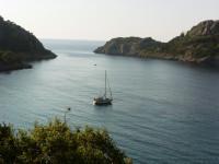 The bay also known as “Gerbekse" by locals, is one of the shelters for blue voyage sailboats. Cape extending into the sea and a small island at the entrance protects the bay from the wind and waves. The coast of Gerbekse has couple of restaurants and few wharfs. There are ancient ruins and churches up the hill from the castle. Affected by the beauty of the temple, some new married foreign tourists ask the boat captains to marry them by crew becoming witness. As you climb into the hills of pine and olive trees, the beauty of Gerbekse become more apparent. The further sharp and steep slopes of the Gerbekse bay are still untouched. Gerbekse have season until 15 of November and is close to Meltem winds. Coasts have small gravels, and Bottom of the bay have a good anchor holding property with depth of 5-7 meters. Interesting rock structure of the small island is admirable as much as the subtle beauty of Gerbekse bay.