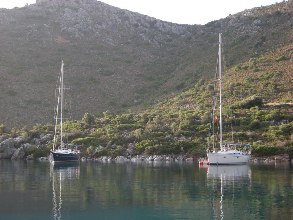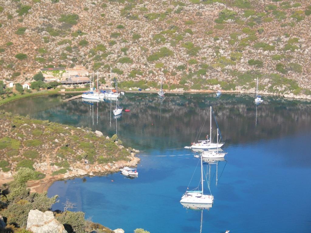 Dirsek buku is a deep inlet type bay on a cape between the Gulf of Hisaronu and Gulf of Yesilova. It is a common stop or the boats on blue voyage between Marmaris and Bodrum if they will not pass Symi Island. Because of its shape it is a sheltered bay from all kinds of weather. In addition, if you start sailing from Hisaronu or Selimiye in the morning and sail around different islands by tacking, you can reach this beautiful bay and rest for a while. Then you can sail back to Hisaronu – Selimiye with wind turning to beam reach to broad reach .