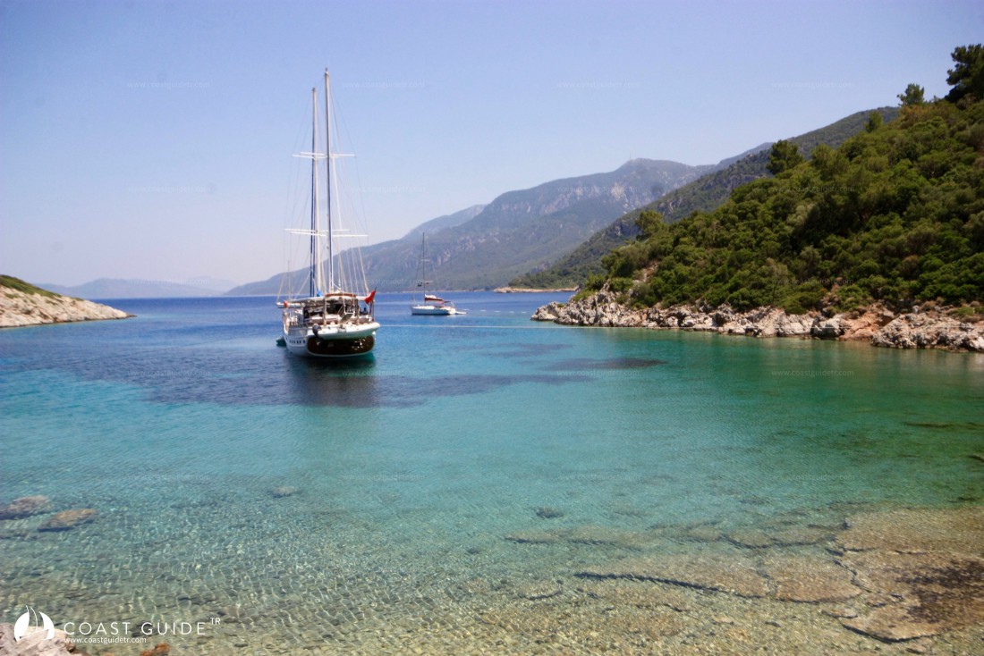 The Mersincik Bay (Mersincik Limani in Turkish) is on the North Side of Datca, surrounded by lovely forests which add colour to the setting of clear blue waters and yellow sandy seabed. It is an inviting place and very popular with yachts. Mersincik Limanı is an attractive place with the many olive trees covering the slopes.