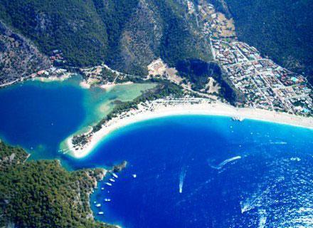 From Gemiler Island one reaches Bestas Harbor. Rounding Yogan Cape from here one enters the gulf of Belcegiz. Olu Deniz, a beautiful inland bay that stretches behind the cape. The reason this heavenly place is called Olu Deniz ("Sea of the Dead") is attributed to the following legend. Once a father and son were caught in a storm here and were in danger of sinking. The son claimed that if they approached the rocks ashore they could take shelter in a cove. The father on the other hand asserted that their ship would be driven onto the rocks and break up and that there were no coves around here anyway. In his terror of running around on the rocks, the father knocked his son (who was at the helm) into the sea with an oar and took over the helm himself. Just as the ship was about to hit the rocks on the cape, she turned into this calm, smooth watered bay. This is the reason they say the bay is called the Sea of the Dead, whereas what with the pine clad sandy beach stretched out like a tongue, the name "Paradise Bay" would be more fitting. Vessels are not allowed inside the bay to prevent its pollution.
