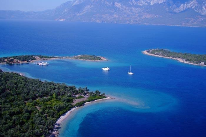 Cedar Island (formerly Sideyri) Kerme Gulf (Gulf of Gokova) worth seeing in the beautiful, ancient ruins of a triple is the largest island group. Cedra Kedrai name in ancient times, or is located on the island remains from this period.
