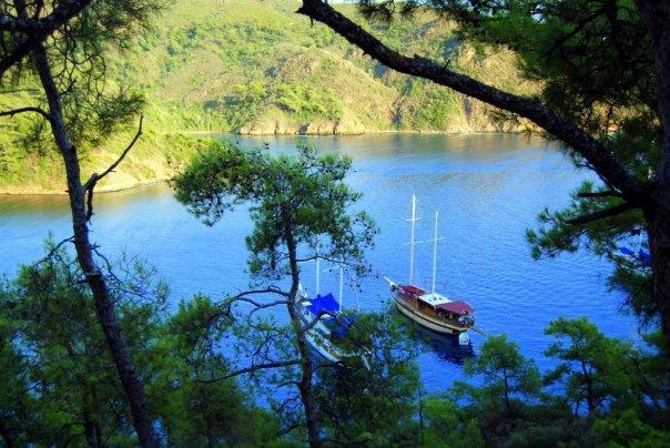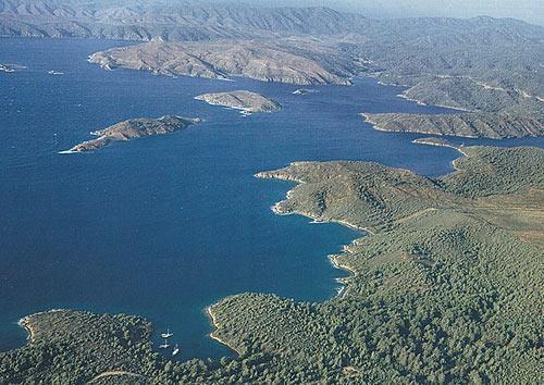 Four islands in front of the southern shores of Gokova covered with pine forests create a wide gulf of 2 miles wide between them and the shore. You can find many calm places to anchor between the bays of the shore and the islands. Martili in the west is a bare island; there are beautiful beaches to swim on south side and East Cape of the island. The other islands are Uzun, Zeytinli and Kucuk. They all have steep and rocky shores and no sandy beaches. Islands are mostly barren, but covered with pine trees in the cove areas. Çamaltı, Bekar (Gökağaç Inlet), Karağaç Limani, Uzun Liman, Babüş bükü, Küfre Bay and Göllü ada are the most important anchoring coves in the Yediadalar. Çamaltı has sands in the beach and the sea bottom and a coast covered with trees. Bekar Liman is a cove of 150 meters in diameter like a pool. As soon as Gullets enters, yachts rarely come. Küfre bay is the most popular in this region. All coves are linked to one another with dirt paths. There is only shabby restaurant in seven islands which is in Küfre. So Seven islands is out of civilization. Göllü Island is also good place to anchor and to swim. Halikarnas the Fisherman says "Island looks like hanging in the sky. This is the centre of Gokova and the world." Yedi Adalar is composed of dozens of small and big islands and many coves. This area is full of incense trees. You always breathe in the smell of incense . Göllü Island, the northernmost island, is a great place for diving. The underwater fauna is very rich. This area also have legendary story of the eels. Journey of eels which starts from here to Bahamas takes 3 years. They lay there and die. After hatching, the little ones finds Gokova in the huge seas they do not know and return to Yedi Adalar. Offspring of Norwegian parents returns to fiyords Norway, Offsprings of the eels of Gökova returns to this islands. The best time to visit is September and especially October. The famous Kiran winds of Gokova does not affect here.